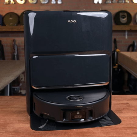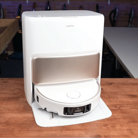 The Mova V50 Ultra Complete is a robot vacuum and mop combo delivering 24,000 Pa of suction. Its StepMaster system allows it to climb obstacles up to 60 mm, while the FlexiRise retractable DToF sensor ensures smooth navigation under low-clearance areas.